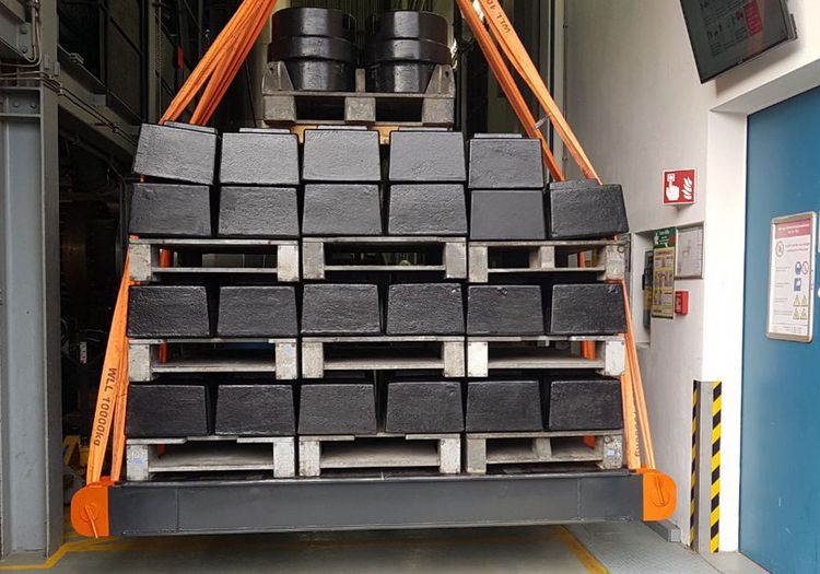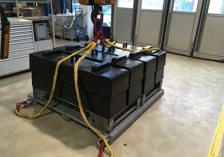 Speziell für Kranwaagen haben wir geniale Eichgewichte entwickelt. Von der Anlieferung der Gewichte über die Gestellung der Anschlagmittel bis zum Aufbau der Prüflasten vor Ort bieten wir Ihnen einen zuverlässigen Rundum-Service. Mit unseren Eigengewichten führen wir Belastungszustände von bis zu 250 Tonnen aus.